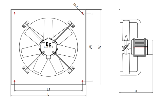 Industrial Exhaust Fan is a high-performance ventilation device designed primarily for large industrial spaces such as factories, warehouses, and kitchens. It effectively exhausts stale air, smoke, moisture, and dust. Its characteristics include large air volume, high structural strength, and excellent durability, enabling it to effectively improve air quality and ensure a safe production environment. The product is offered in two variants: standard and explosion-proof (Explosion-proof Classification: Ex db IIB T4 GB), designed to address the distinct safety specifications of diverse operational environments.